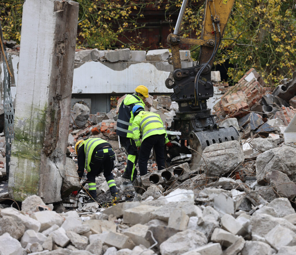 Koparki, młoty hydrauliczne, szczęka – pracujemy własnym sprzętem, dzięki czemu możemy sprawnie i kompleksowo przeprowadzić nie tylko proces wyburzenia ale również utylizacji pozostałości.